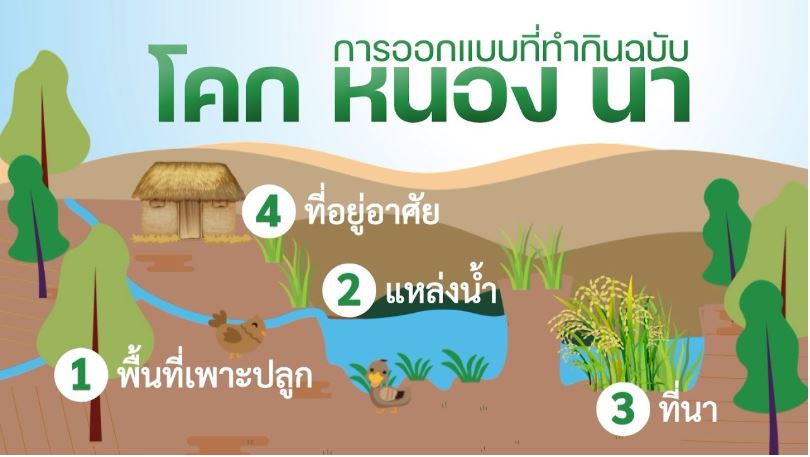 โคก หนอง นา โมเดล คือแนวคิดการจัดการพื้นที่เกษตรกรรมอย่างยั่งยืน โดยผสาน เกษตรทฤษฎีใหม่ กับ ภูมิปัญญาท้องถิ่น เพื่อให้เกิดความสมดุลของระบบนิเวศและการพึ่งพาตนเองได้อย่างยั่งยืน มีองค์ประกอบหลักคือ “โคก” (พื้นที่สูง), “หนอง” (พื้นที่น้ำ), และ “นา” (พื้นที่ปลูกข้าว) ซึ่งออกแบบให้เชื่อมโยงและเสริมกัน เพื่อบริหารจัดการน้ำและทรัพยากรธรรมชาติให้เกิดประโยชน์สูงสุดตามปรัชญาเศรษฐกิจพอเพียงของในหลวงรัชกาลที่ 9 และสืบสานโดยในหลวงรัชกาลที่ 10