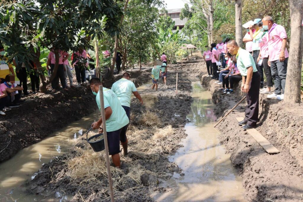 ขุดคดเคี้ยวไปตามพื้นที่เพื่อกระจายน้ำและเพิ่มความชุ่มชื้น พร้อมกับการทำฝายทดน้ำเพื่อกักเก็บน้ำให้มากที่สุด